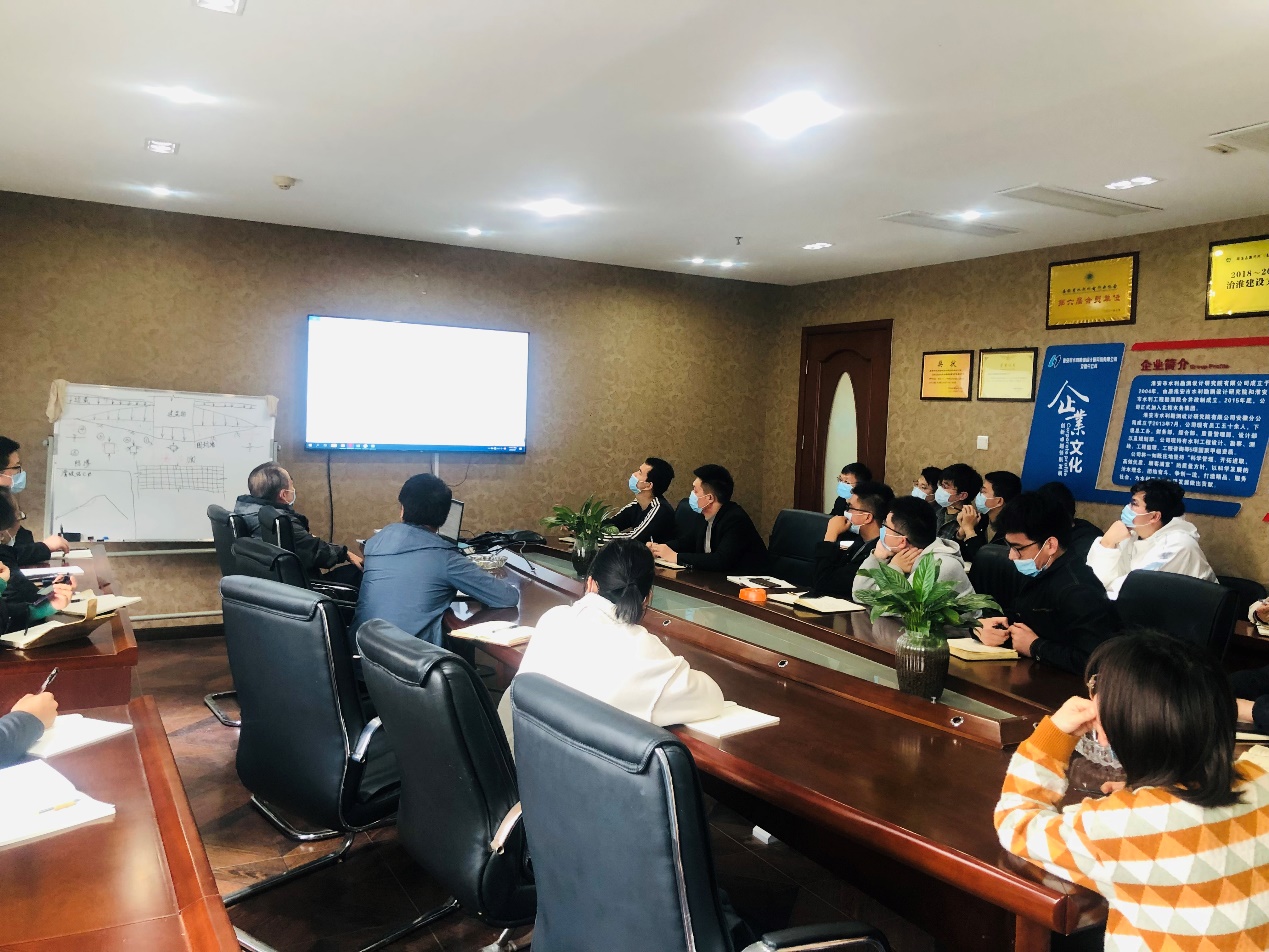 为增强分公司设计人员的专业水平和职业素养,提高设计成果质量以及工程安全,设计部于2022年4月1日下午在公司会议室召开水利工程设计技术讲座,此次讲座由王力理总工主持(水利部首批30名之一“5151”人才(即水利部学术技术带头人)、国务院特殊津贴专家、省工程设计大师、省学术技术带头人、正高工、原安徽省水利勘测设计研究院党委书记兼副院长)。